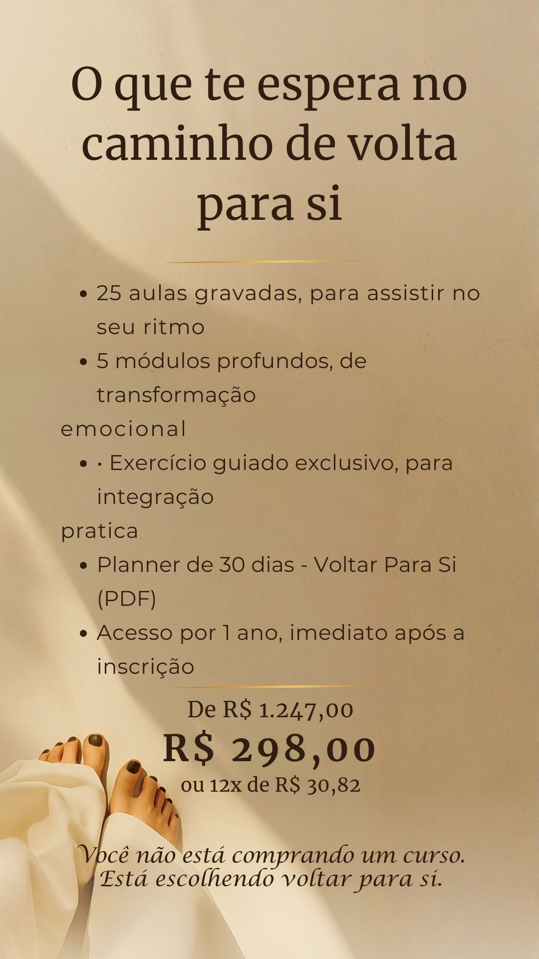 Você vai entender com clareza onde começou a se perder, por que certos padrões se repetem e como começar, aos poucos, a voltar para si com mais presença, consciência e verdade.
